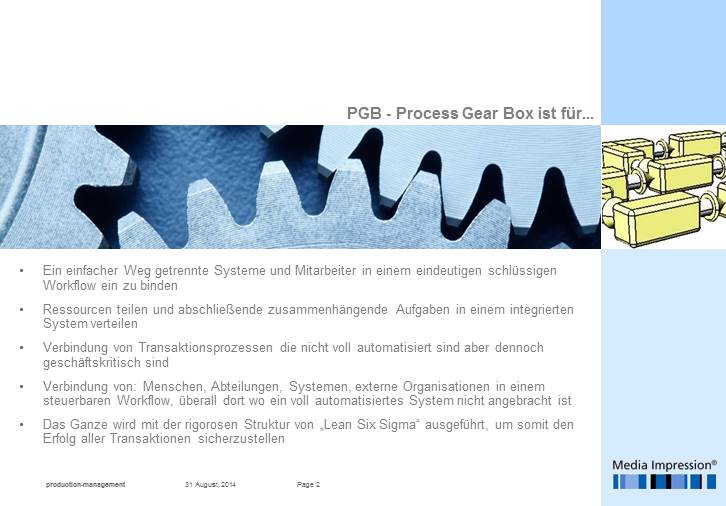 Nur gemeinsam ist es möglich, schonend und effizient den Weg in die neue Zukunft zu gehen ohne alles in Frage zu stellen, mit der Process Gear Box ist dies möglich.